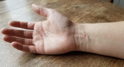 P6 (Neiguan): Located on the inner wrist, approximately three finger widths below the wrist crease, between two tendons. This is the most studied point for nausea.