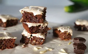 Zucchini-Almond Brownies with Cream Topping